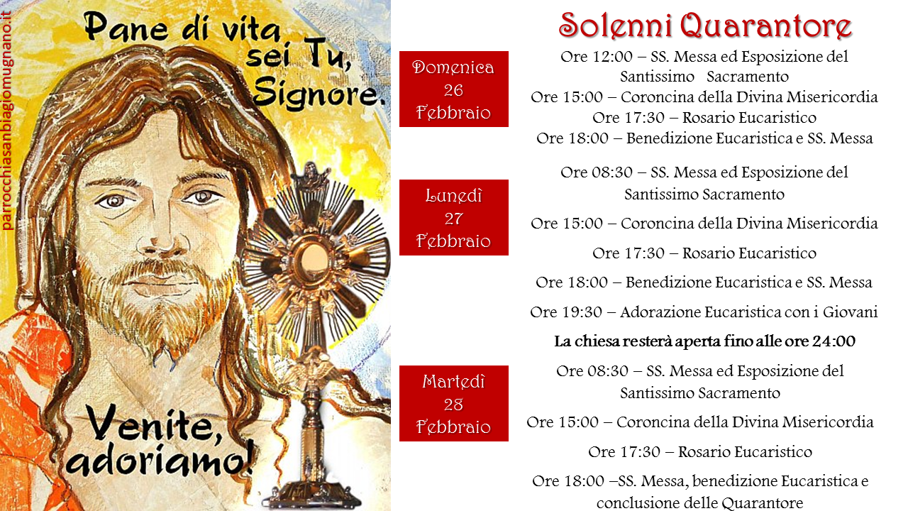 Ore 18:00 –SS. Messa, benedizione Eucaristica e conclusione delle Quarantore